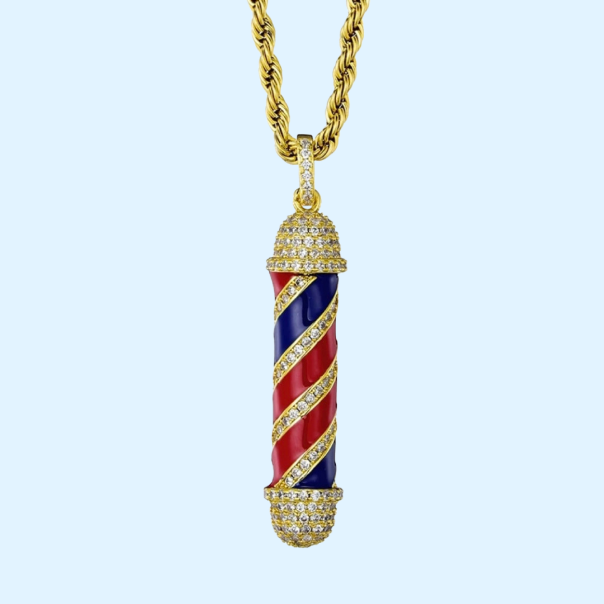 Eer een oude ambacht en straal stijl en trots uit met onze I C Y B A R B E R. Deze unieke ketting is ontworpen om de kunst van het kappersvak te belichamen en is een hedendaags eerbetoon aan de tijdloze traditie van barbiers.